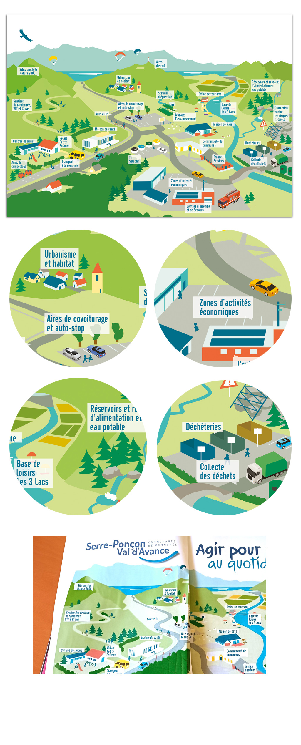 Une mise en infographie des services proposés par la Communauté de Commune de Serre-Ponçon Val d’Avance. Elle servira d’illustration dans le magazine de la ComCom.