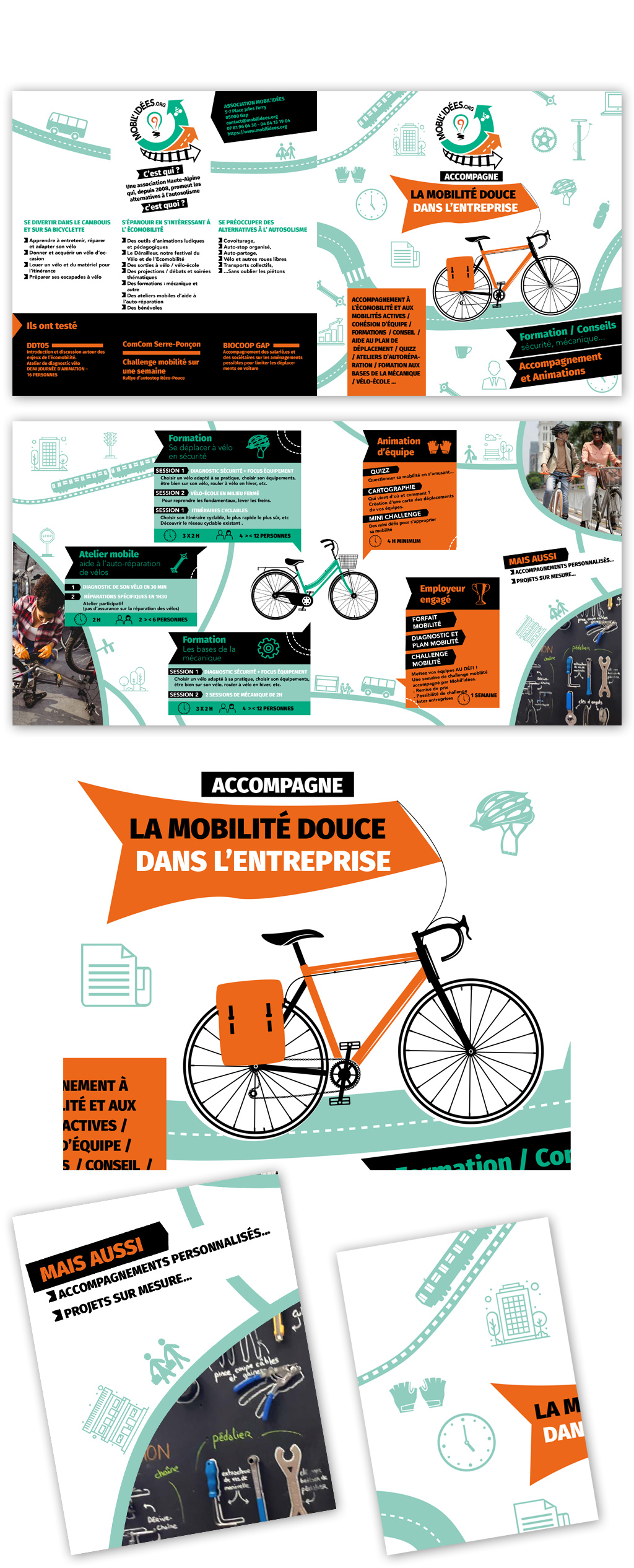 L’association Mobil’idée intervient en entreprise et souhaitais communiquer sur ces interventions. La voilà dotée d’un bel outil avec ce dépliant haut en couleur.